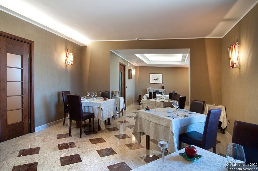 Servizi: nella bottega della Locanda sono a disposizione degli ospiti i prodotti tipici. Una particolare attenzione è riservata ai prodotti dell'Azienda Agricola Pucciarelli di Caggiano con la sua produzione di olio e vino. La Locanda Severino offre la possibilità di mangiare in due diverse sale entrambe arredate con cura ed impreziosite dalle tele di Michele Calocero e le ceramiche di Luigi D'Arco. L'idea è quella di proporre un ambiente elegante, ma allo stesso tempo capace di mettere subito a proprio agio.
